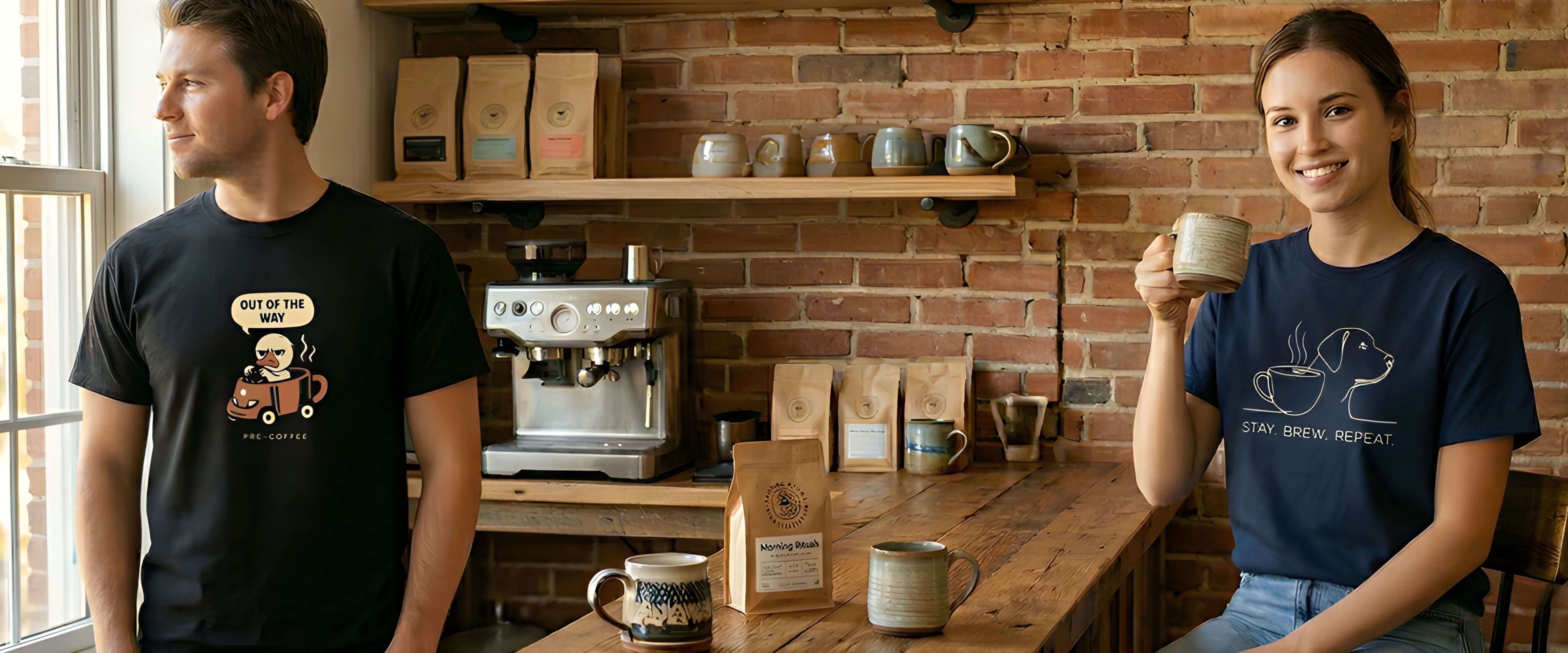 We print our tees right here at home Florida and Texas, to be exact. Just like sourcing the perfect beans, we believe in keeping it local.