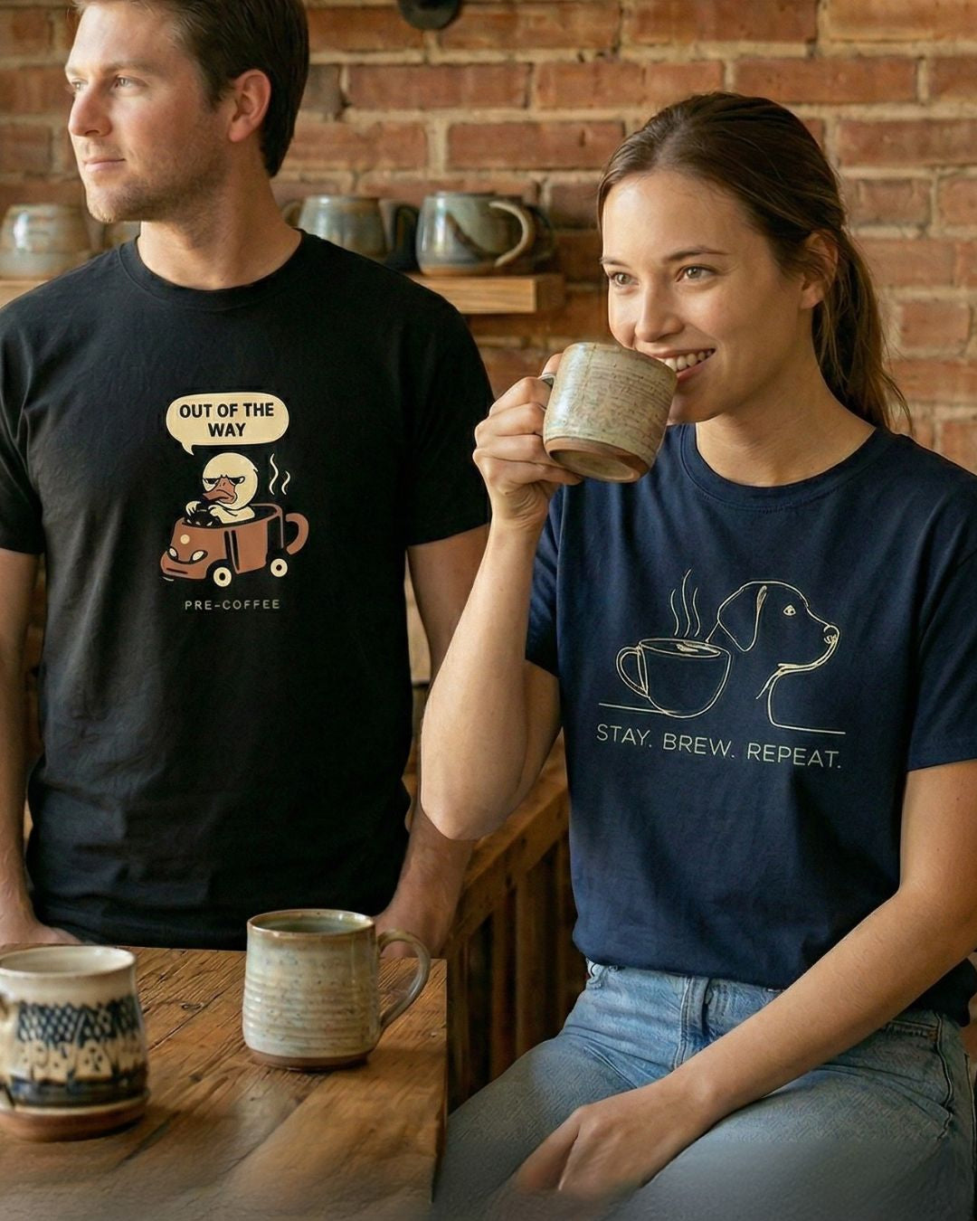 We're talking high-quality, comfy materials gentle on the skin, tough enough for whatever your day throws at you. Just like the perfect blend, every tee hits different. Check each product page for the exact specs.